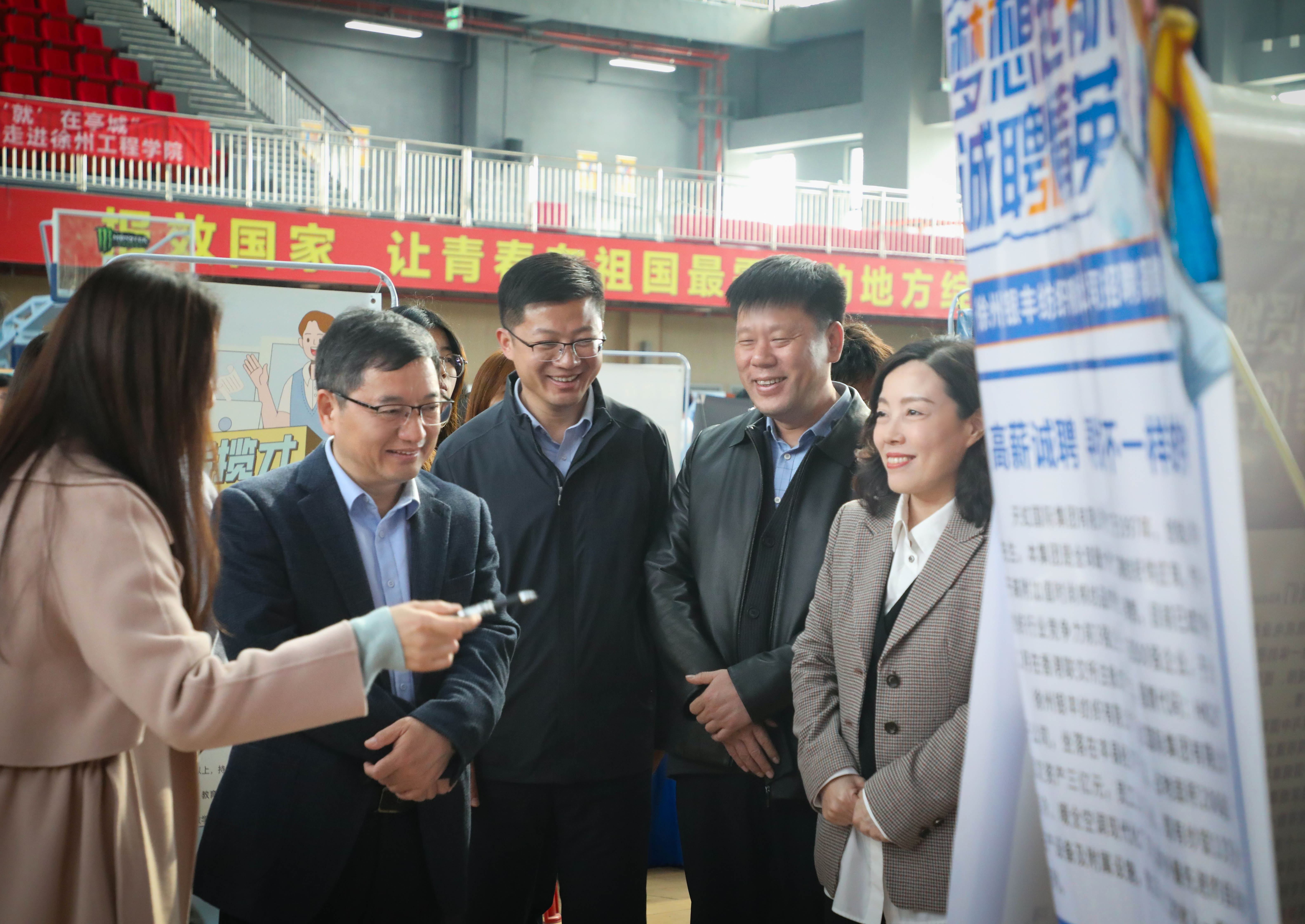 3月25日下午,我校2026年春季首场毕业生就业双选会在东校区体育馆举行。校长张农、副校长王逢博,徐州市云龙区党委常委赵夫平,云龙区人力资源和社会保障局局长李燕等深入双选会现场指导工作。本次双选会吸引了省内外180余家优质用人单位参会,3000余名毕业生到场参加。
