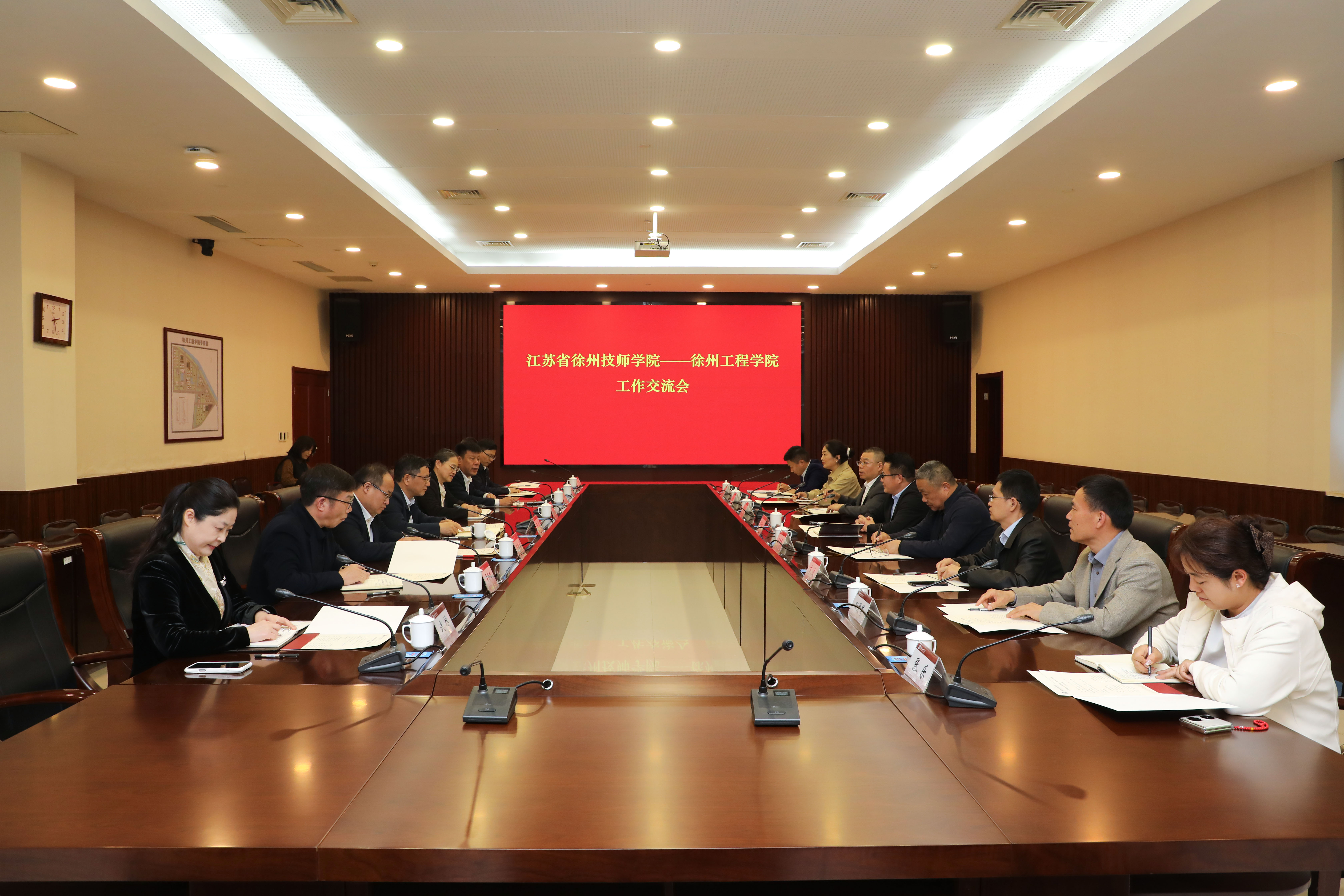 4月23日下午,江苏省徐州技师学院校长宋思运,副校长安德锋、周青生、卞波等一行来我校交流。校长张农,副校长姜慧、陈新忠、王逢博出席交流会。