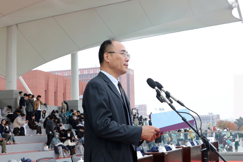 校长张农致开幕辞。他强调,学校将持续深化体育教学改革,推动校园体育文化建设,促进群众体育、竞技体育协调发展,让同学们在体育锻炼中享受乐趣、增强体质、健全人格、锻炼意志,实现德智体美劳的全面发展。